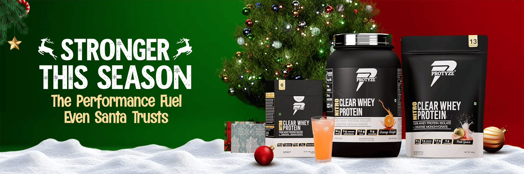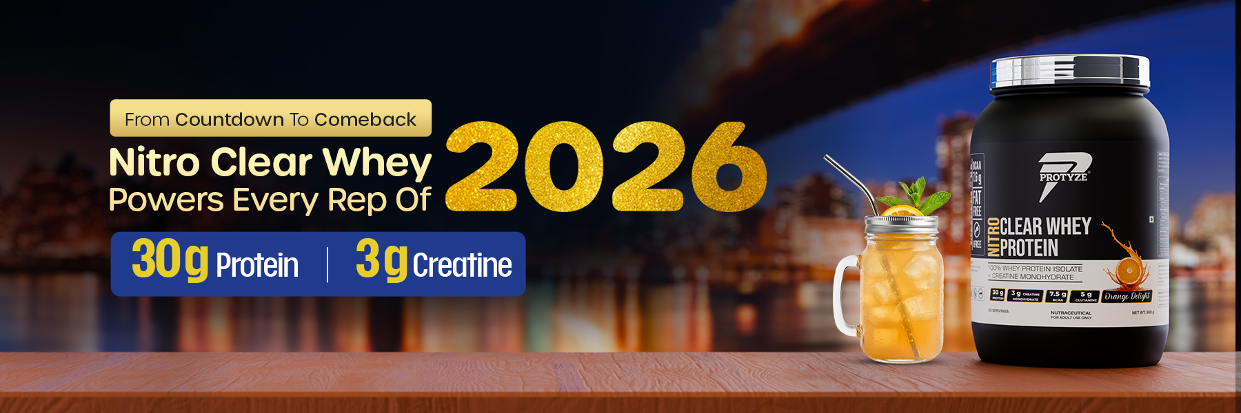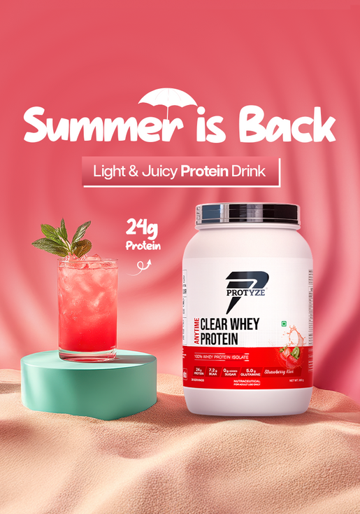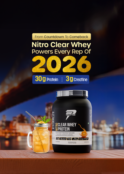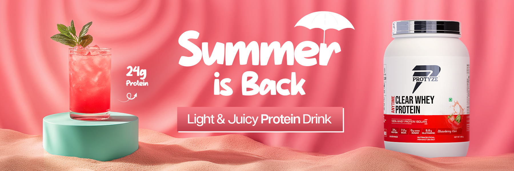 Upgrade your milky protein shakes with clear whey protein by Protyze — a new era of clean, clear, and effective whey protein nutrition. From best clear whey protein isolate to advanced blends with probiotics, creatine, electrolytes, and glutamine, our clear protein products are crafted to support strength, recovery, gut metabolism and hydration without the heaviness of traditional protein shakes. Whether you're working out or simply staying active, Protyze clear whey offers a range of light, fruit-flavoured best clear whey protein that are easy to digest and big on results. Make the switch to smarter, faster, and better whey protein — Made in India using a patented process, trusted by 26,000's of fitness enthusiasts.
