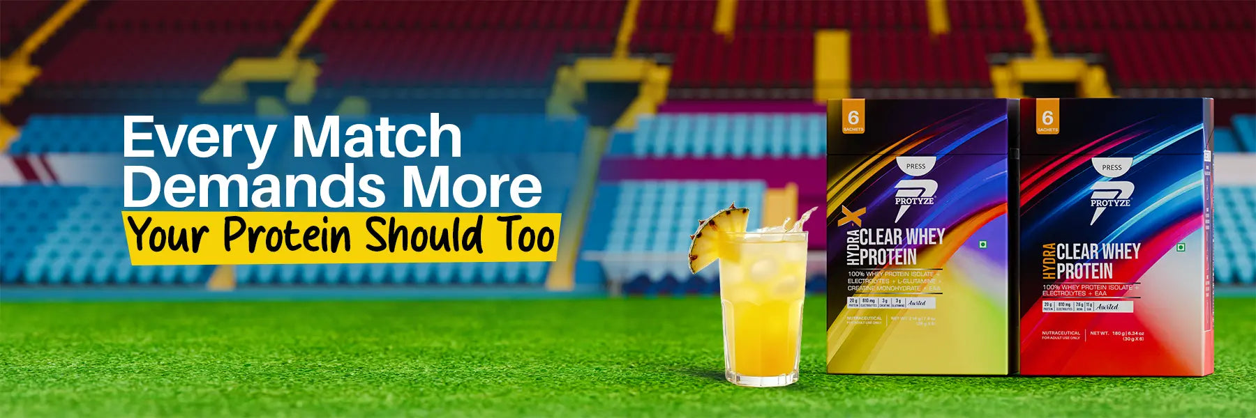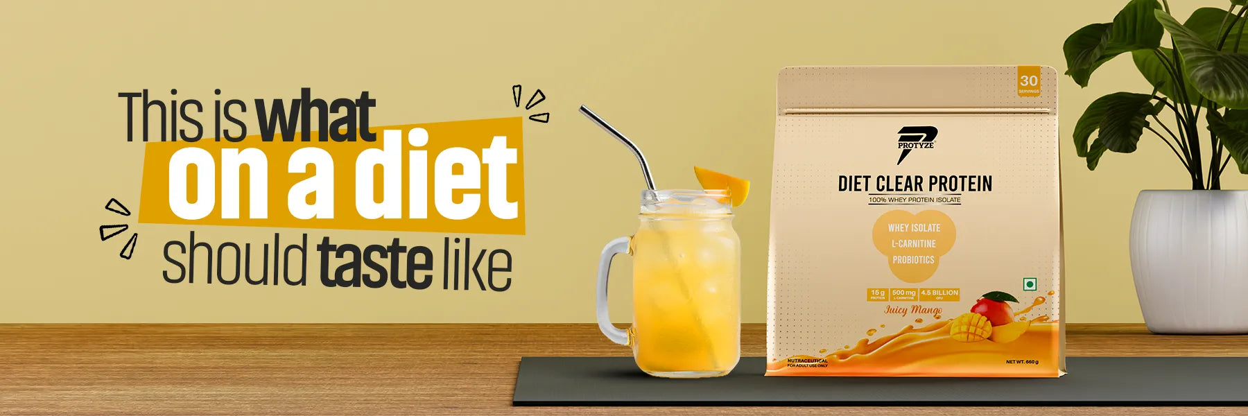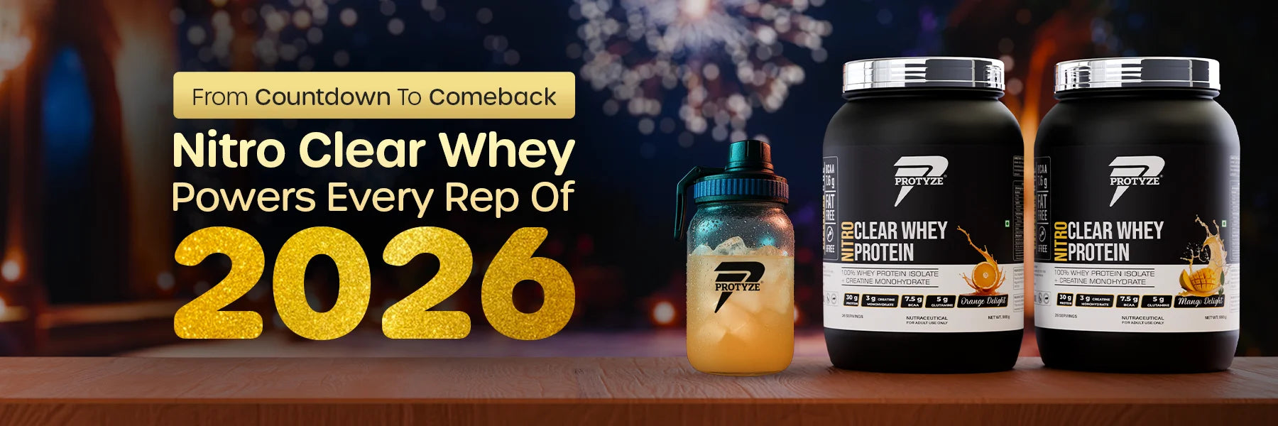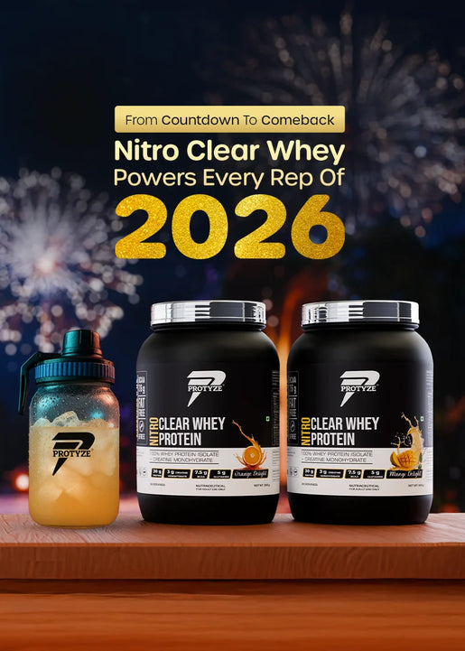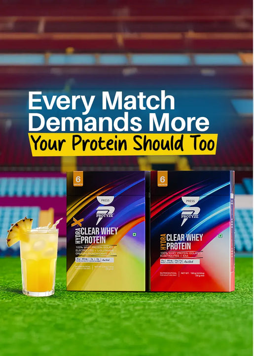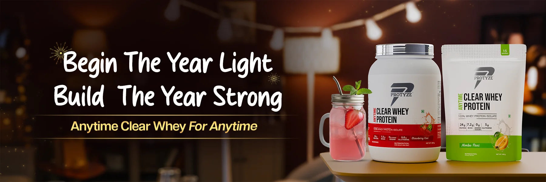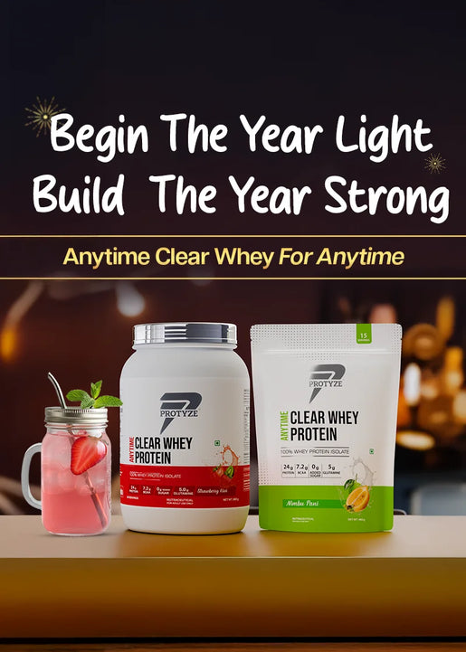 Upgrade your milky protein shakes with clear whey protein by Protyze — a new era of clean, clear, and effective whey protein nutrition. From best clear whey protein isolate to advanced blends with probiotics, creatine, electrolytes, and glutamine, our clear protein products are crafted to support strength, recovery, gut metabolism and hydration without the heaviness of traditional protein shakes. Whether you're working out or simply staying active, Protyze clear whey offers a range of light, fruit-flavoured best clear whey protein that are easy to digest and big on results. Make the switch to smarter, faster, and better whey protein — Made in India using a patented process, trusted by 26,000's of fitness enthusiasts.