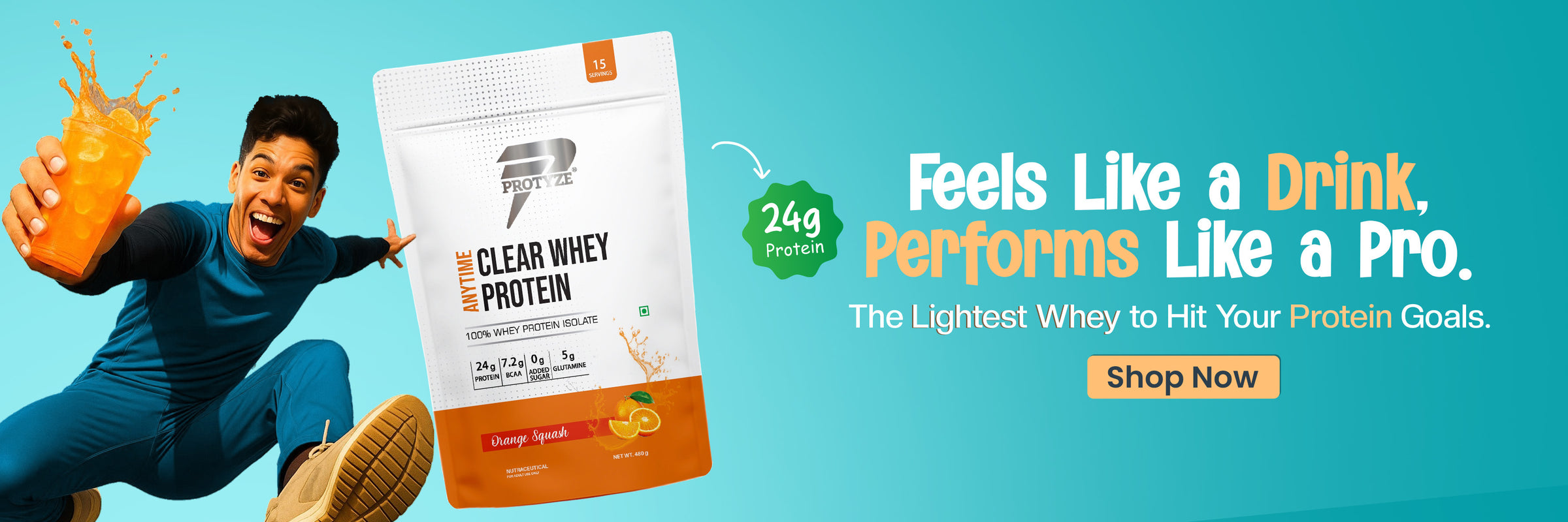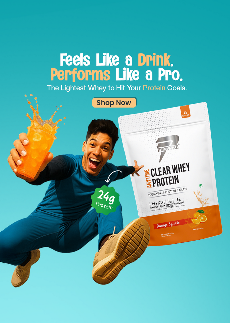 Upgrade your milky protein shakes with clear whey protein by Protyze — a new era of clean, clear, and effective whey protein nutrition. From pure clear whey protein isolate to advanced blends with probiotics , creatine, electrolytes, and glutamine, our products are crafted to support strength, recovery, gut metabolism and hydration without the heaviness of traditional shakes. Whether you're working out or simply staying active, Protyze offers a range of light, fruit-flavoured best clear whey protein that are easy to digest and big on results. Make the switch to smarter, faster, and better whey protein — Made in India using a patented process, trusted by 26,000's of fitness enthusiasts.