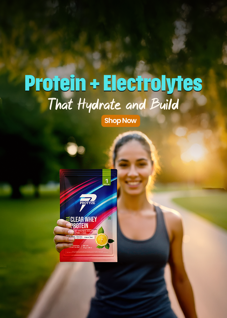 Upgrade your milky protein shakes with clear whey protein by Protyze — a new era of clean, clear, and effective whey protein nutrition. From pure clear whey protein isolate to advanced blends with probiotics , creatine, electrolytes, and glutamine, our products are crafted to support strength, recovery, gut metabolism and hydration without the heaviness of traditional shakes. Whether you're working out or simply staying active, Protyze offers a range of light, fruit-flavoured best clear whey protein that are easy to digest and big on results. Make the switch to smarter, faster, and better whey protein — Made in India using a patented process, trusted by 26,000's of fitness enthusiasts.