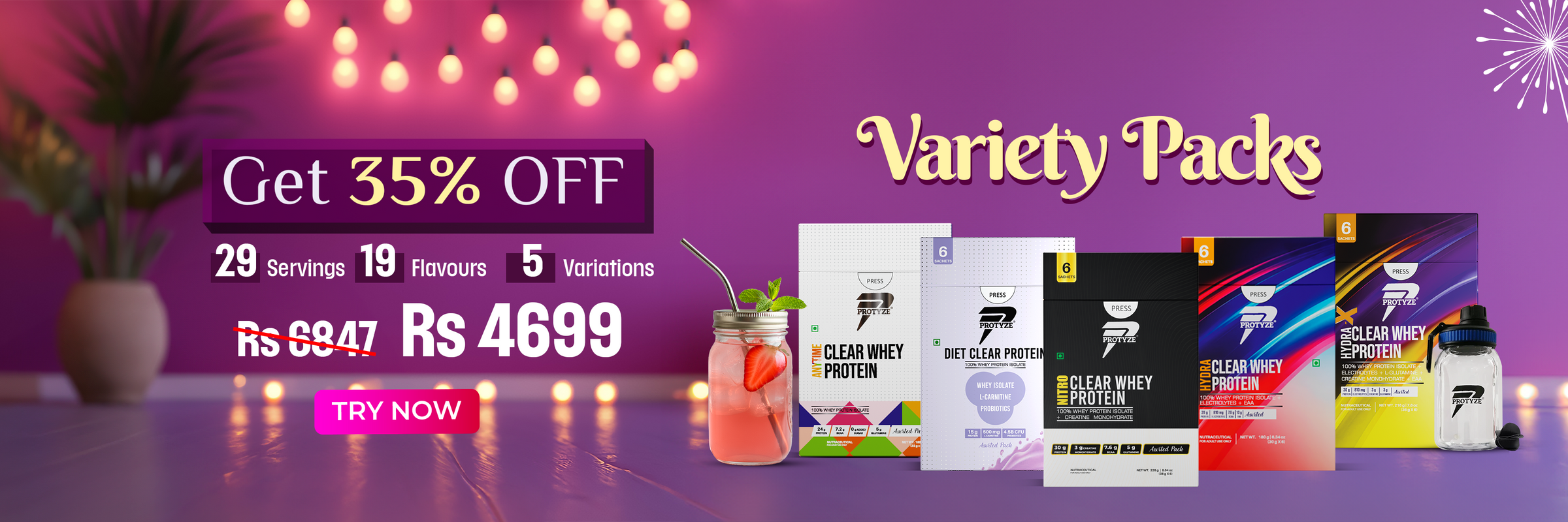 Upgrade your milky protein shakes with clear whey protein by Protyze — a new era of clean, clear, and effective whey protein nutrition. From pure clear whey protein isolate to advanced blends with probiotics , creatine, electrolytes, and glutamine, our products are crafted to support strength, recovery, gut metabolism and hydration without the heaviness of traditional shakes. Whether you're working out or simply staying active, Protyze offers a range of light, fruit-flavoured best clear whey protein that are easy to digest and big on results. Make the switch to smarter, faster, and better whey protein — Made in India using a patented process, trusted by 26,000's of fitness enthusiasts.