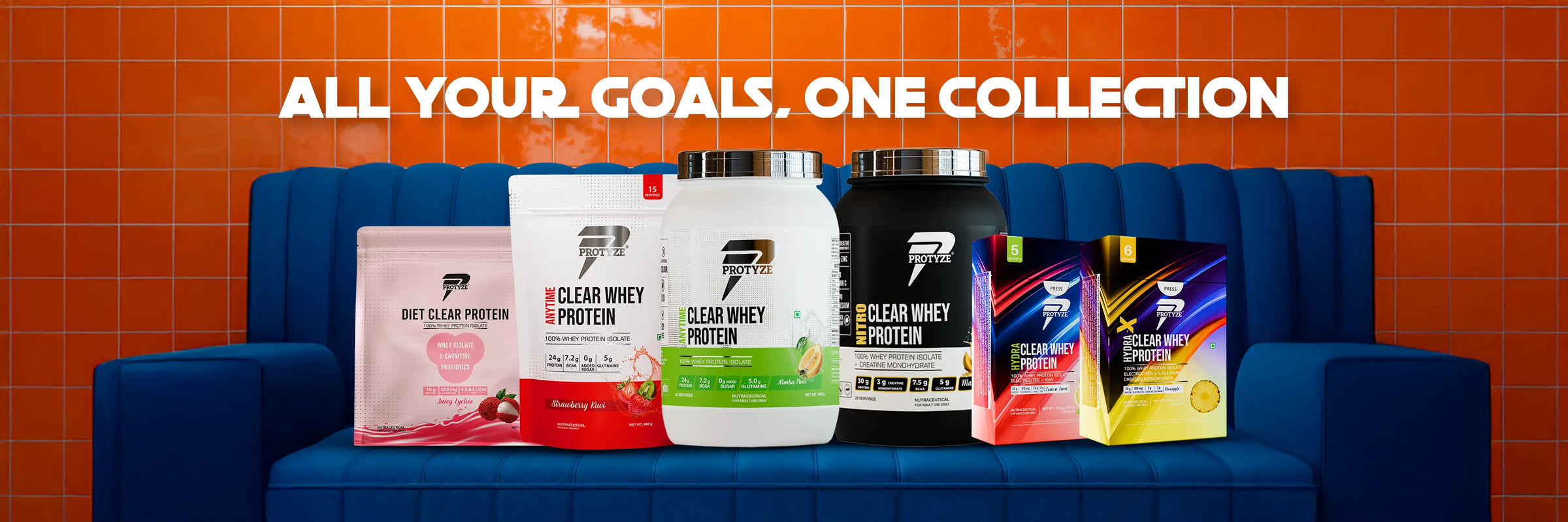 Anytime Clear Whey Protein Isolate, Assorted Flavor Set 3 (Nimbu Pani, Lychee Martini, Mango Peach, Blueberry Crush, Strawberry Kiwi)