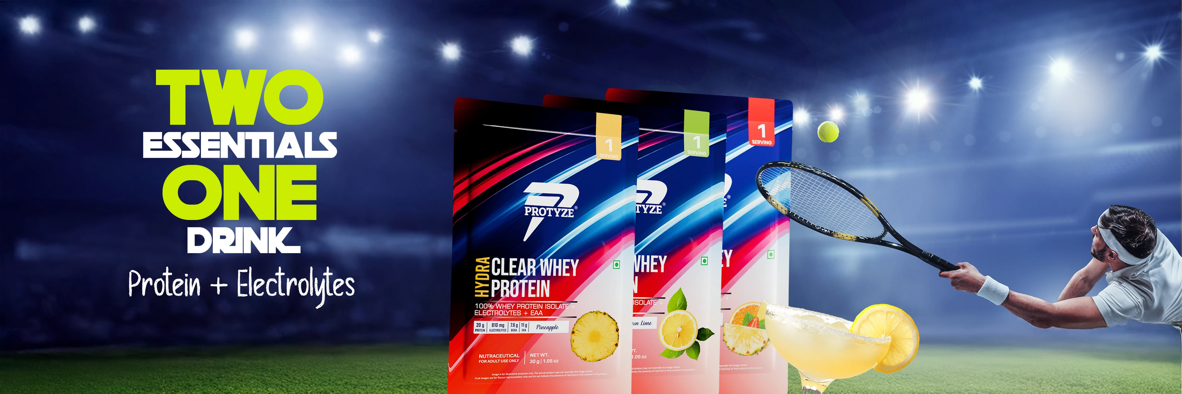 Fuel your body with Hydra – India’s first clear whey protein with electrolytes, crafted to deliver fast-absorbing protein and instant hydration in one refreshing drink.