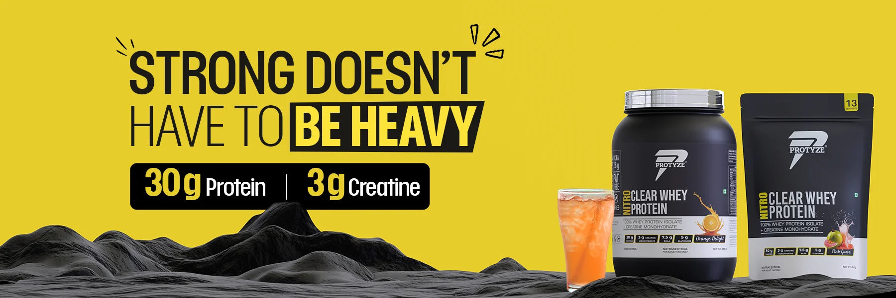 If you’re looking for the best whey protein with creatine for muscle gain and strength, Protyze Nitro Clear Whey Protein delivers unmatched performance without bloating.