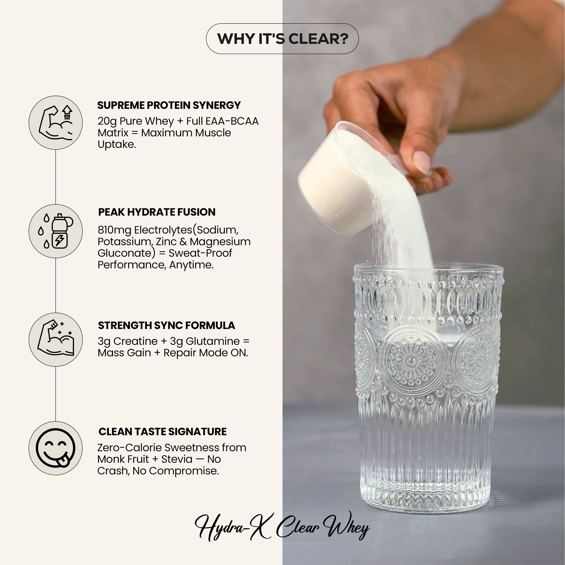 Unlike white-labeled products, Hydra-X Clear Whey is formulated in-house at our advanced R&D center. Each batch undergoes strict testing and innovation to ensure fast absorption, clean hydration and powerful results.