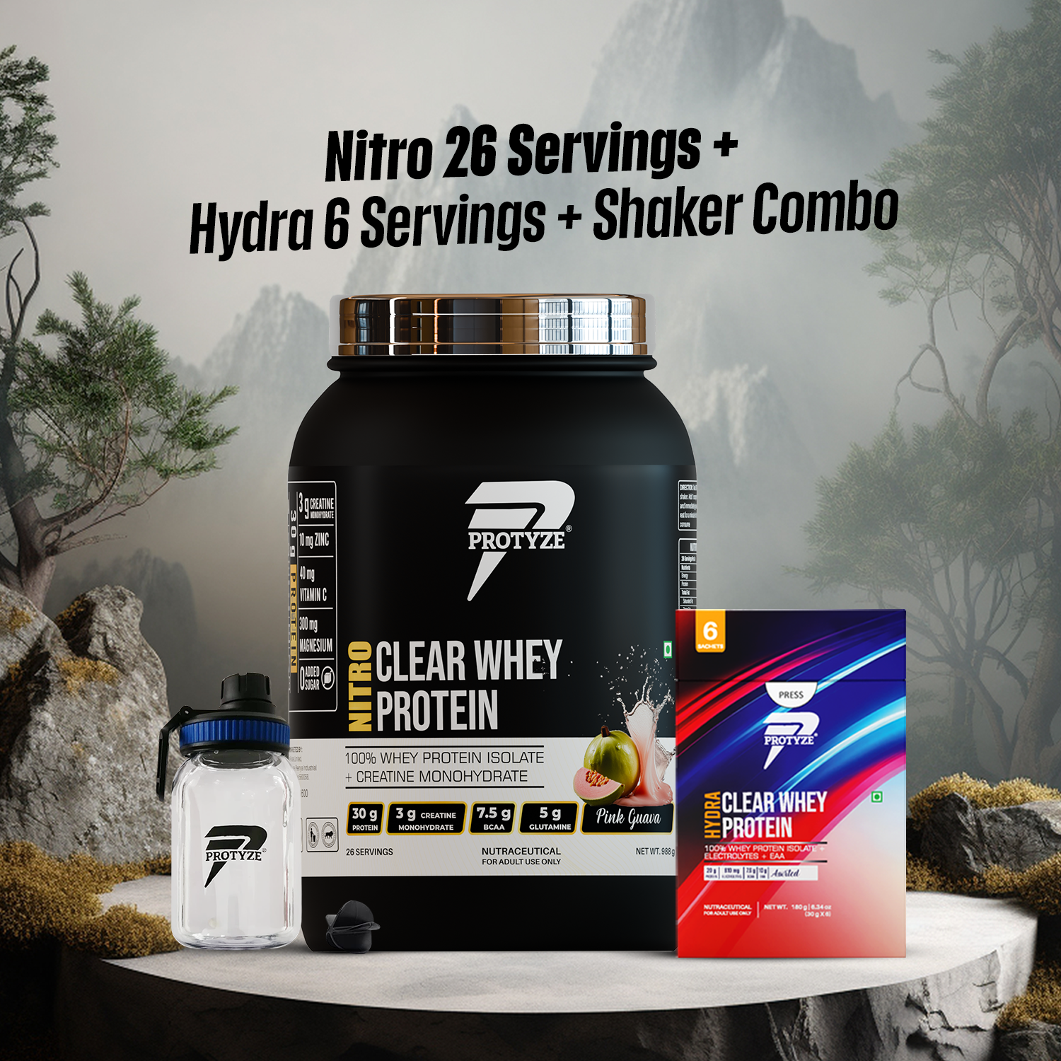 Nitro Clear Whey Protein Isolate 26 Servings Jar + Hydra Assorted Pack Of 6 + Shaker Combo