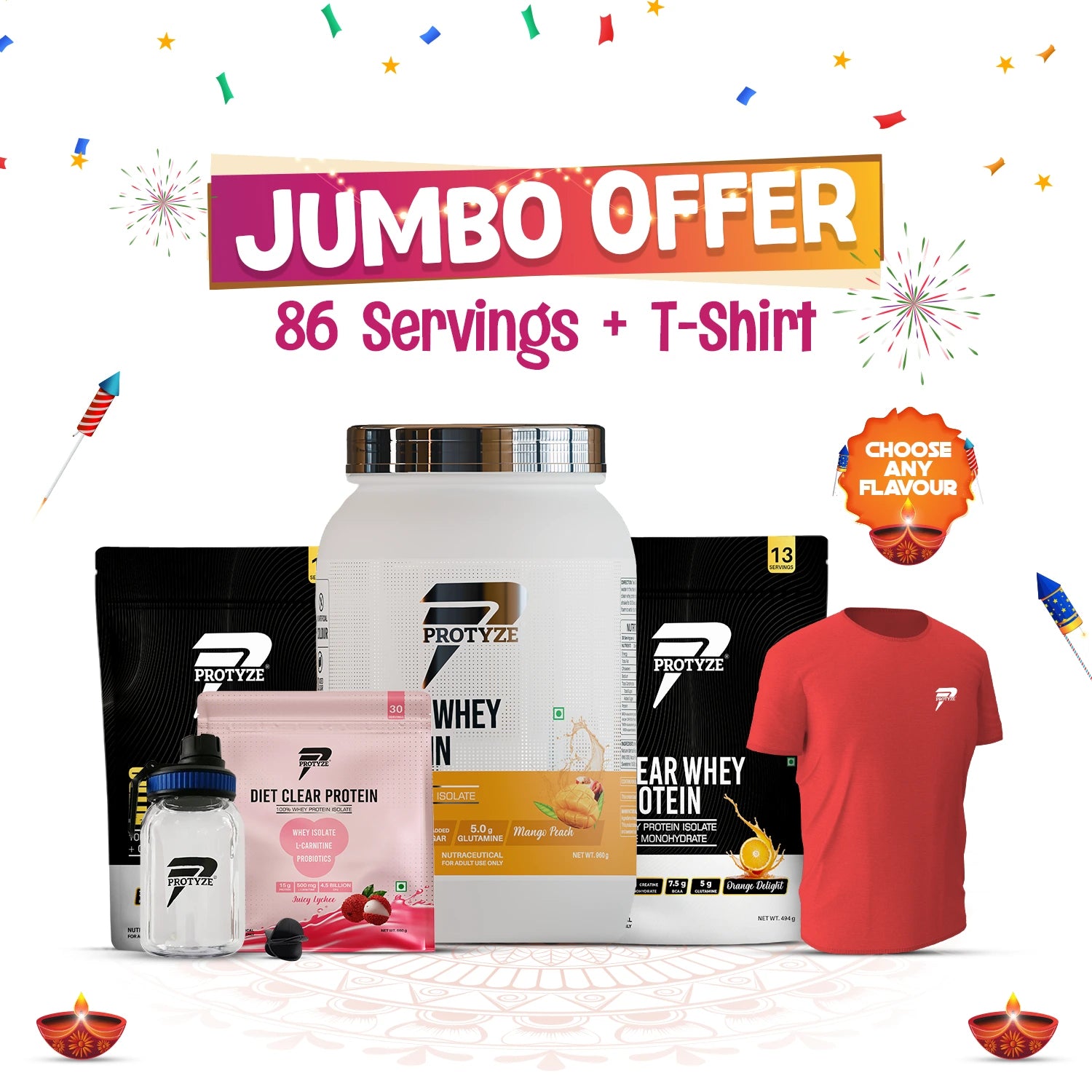 Protyze Clear Whey Jumbo - (1Anytime Jar + 2Nitro Pouch's + 1Diet Pouch + Shaker & T-Shirt Combo)