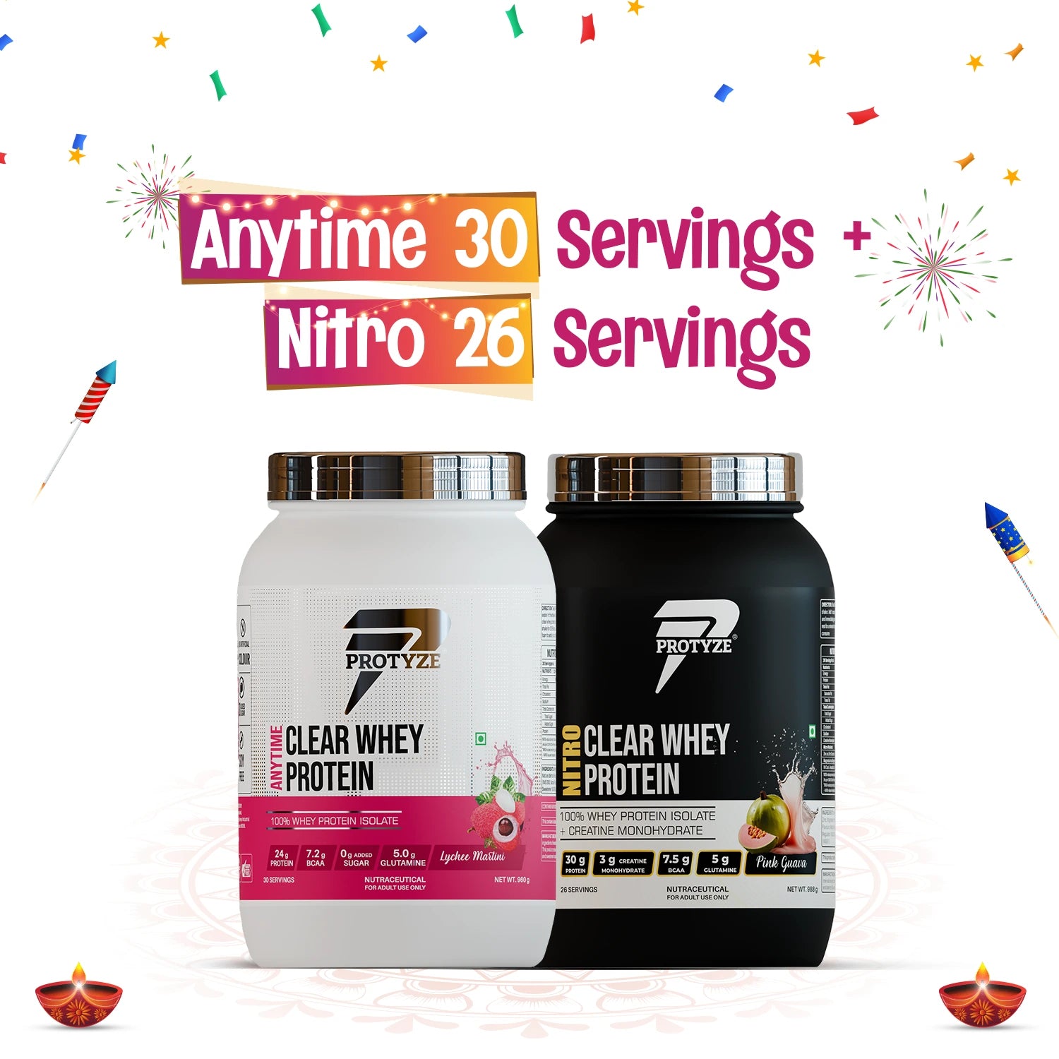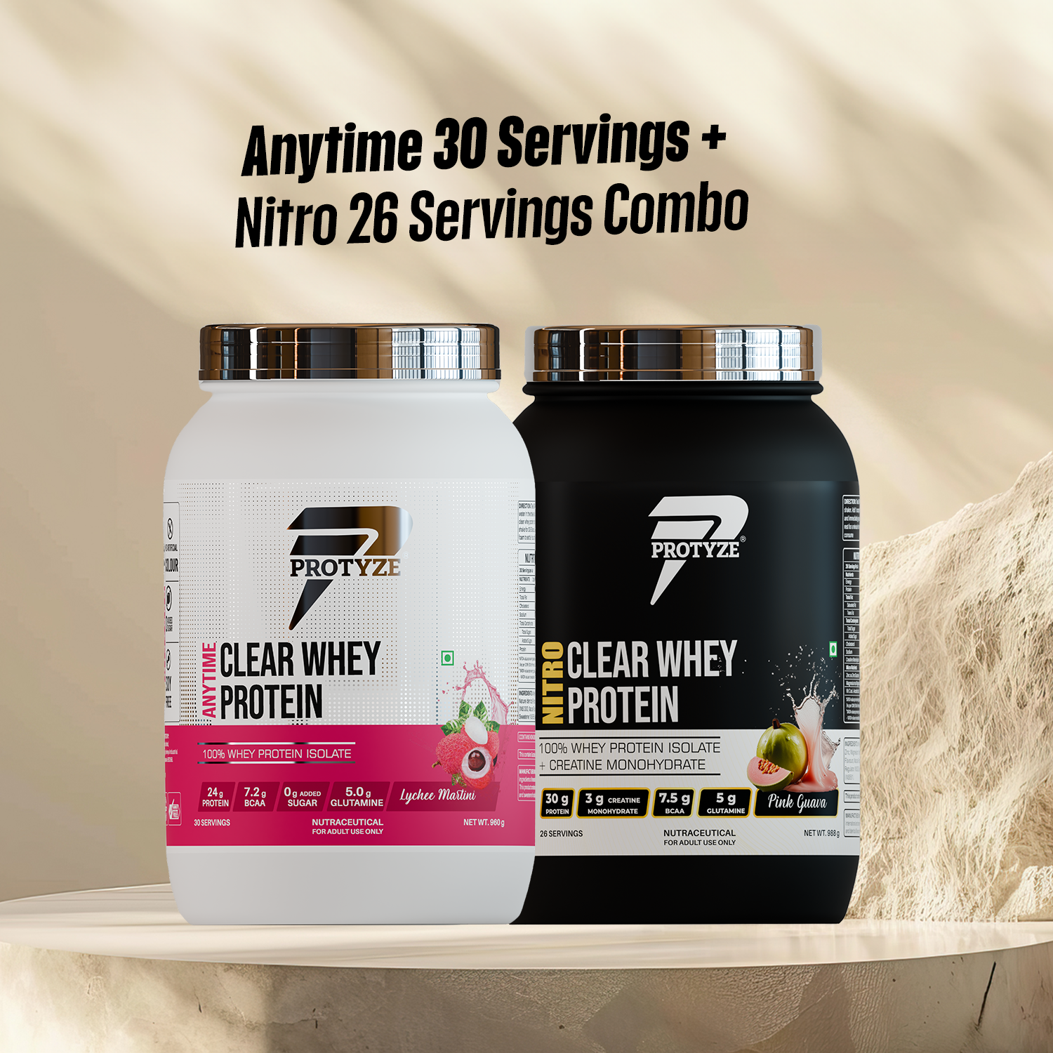 Protyze Clear Whey Protein Anytime Jar + Nitro Jar Combo (30+26 Servings)